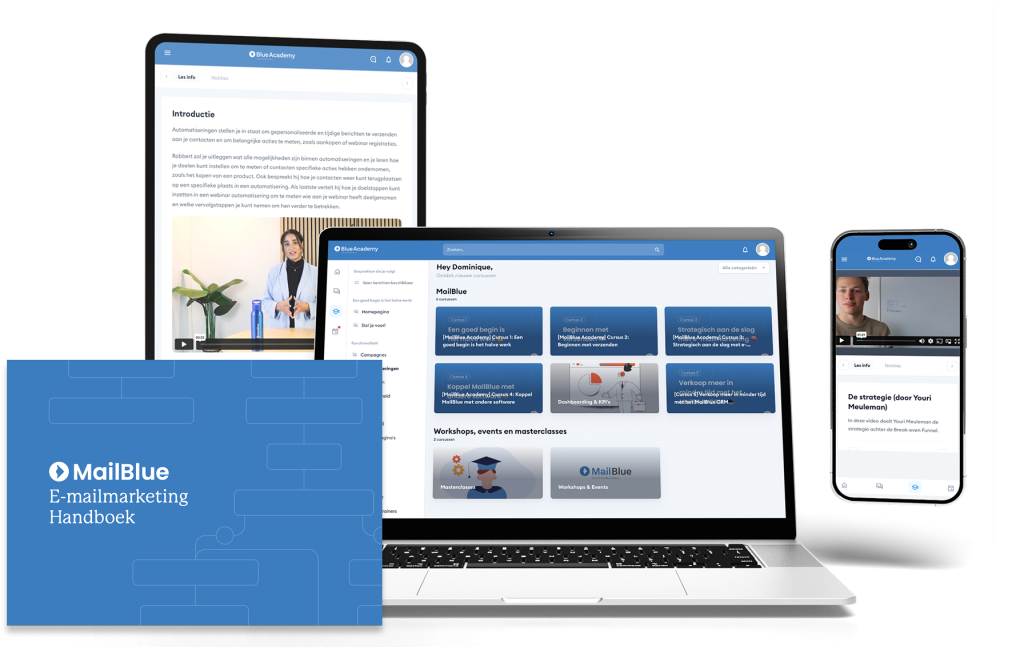 e-mailmarketing. Volg de training op je eigen tempo, spar of doe inspiratie op in onze community. Bij MailBlue krijg je als bonus gratis toegang tot de MailBlue Academy en community.